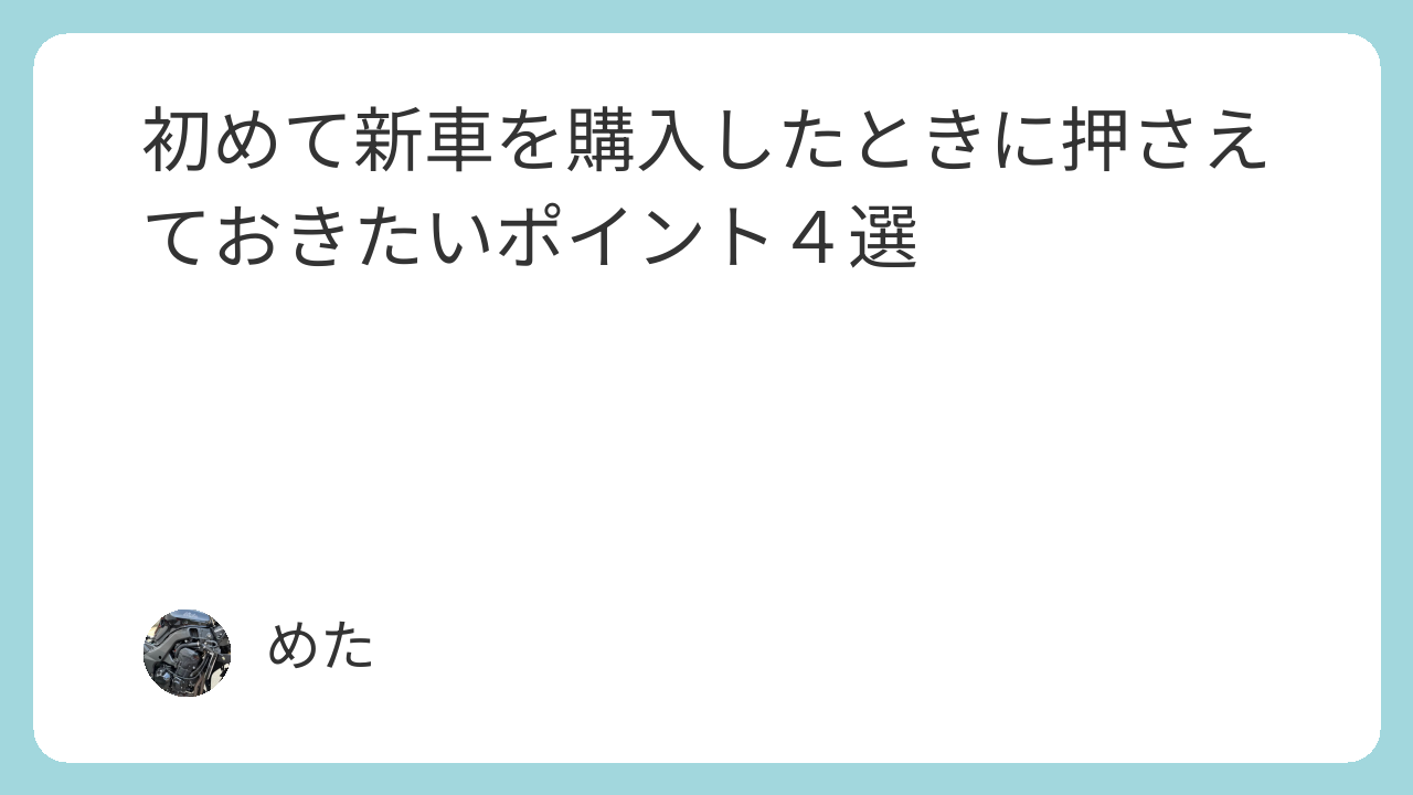 新車を購入したら「1カ月無料点検」「6カ月無料点検」の案内があると思いますがこれは欠かさずに受けときましょう。ディーラー以外で購入された方は担当の方にどうすればよいか確認しましょう。点検を受けるメリットはこちら